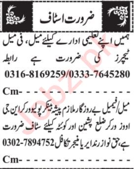 Private Company invites applications for job positions advertised in daily Jang dated 1 August 2022 for following vacancies in Quetta, quetta Balochistan Pakistan.