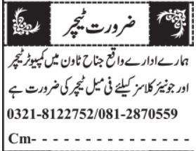 Teacher & Computer Teacher Jobs 2025 In Quetta