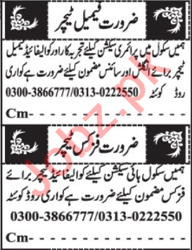 Latest Private School Teaching Posts Quetta 2025