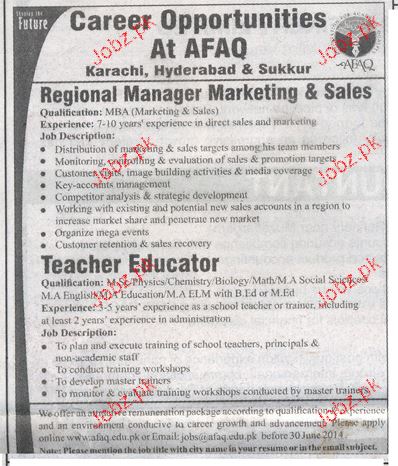 Teacher Educators And Regional Manager Job Opportunity