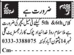 Teacher & Female Teacher Jobs 2024 in Quetta