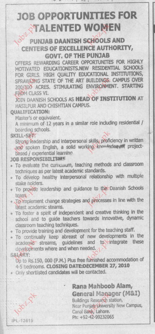 Apply as per details in job advertisement. Login to view further details of how to apply via https://www.jobz.pk online.