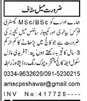 Vacant posts including male science teacher, male chemistry teacher, male physics teacher, male biology teacher and male computer teacher are announced in Afridi Model School & College Peshawar, peshawar Khyber Pakhtunkhwa KPK Pakistan as per 16 January 2023 advertisement in daily Aaj Newspaper. Candidates with M.sc and MA etc. educational background will be preferred.