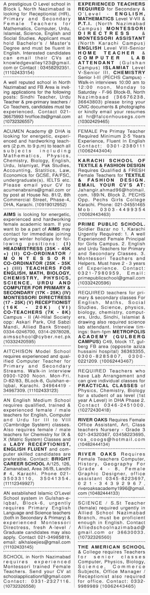Latest Private School Teaching Posts Karachi 2025