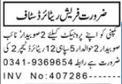 Apply as per details in job advertisement. Login to view further details of how to apply via https://www.jobz.pk online.