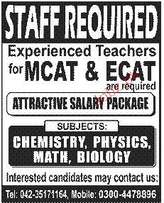 Teachers MCAT And ECAT Job Opportunity