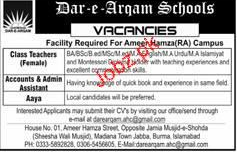 Teachers, Admin Assistant and Ayas Job Opportunity