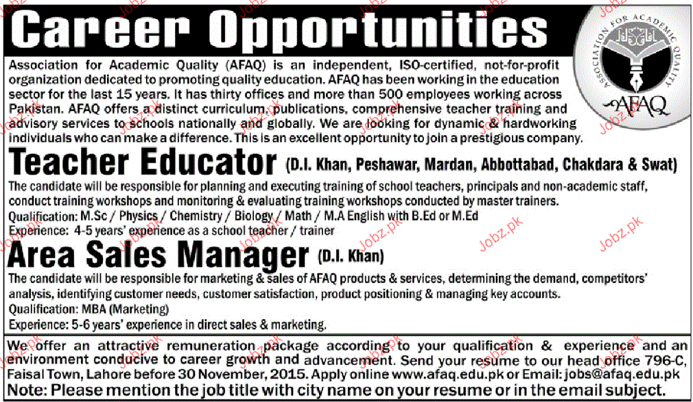 Apply as per details in job advertisement. Login to view further details of how to apply via https://www.jobz.pk online.