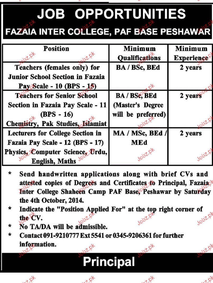 Apply as per details in job advertisement. Login to view further details of how to apply via https://www.jobz.pk online.