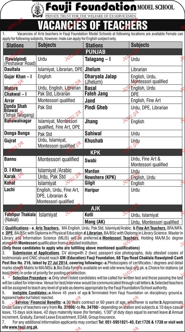 Latest Fauji Foundation Teaching Posts Rawalpindi 2025