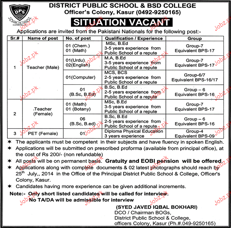 Latest Government Teaching Posts Kasur 2025