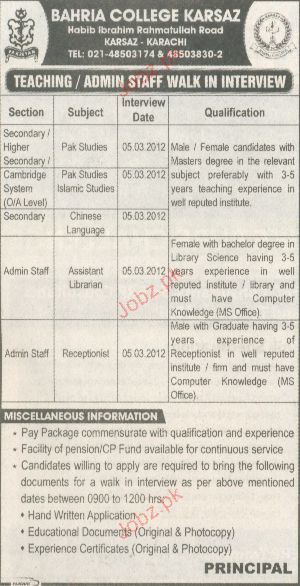 Apply as per details in job advertisement. Login to view further details of how to apply via https://www.jobz.pk online.