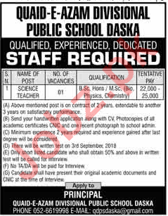 Latest Quaid e Azam Divisional Public School Teaching Posts Daska 2025