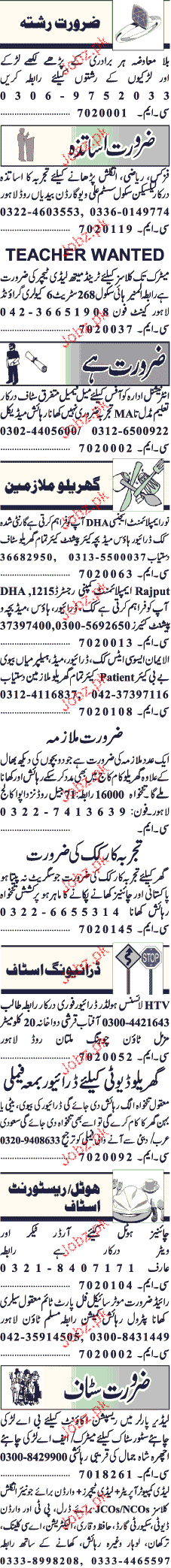 Teachers, Drivers, Chawkidars, Cook and Receptionist Wanted