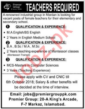 Latest Premier Group of Companies Teaching Posts Mardan 2025