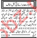 Apply as per details in job advertisement. Login to view further details of how to apply via https://www.jobz.pk online.