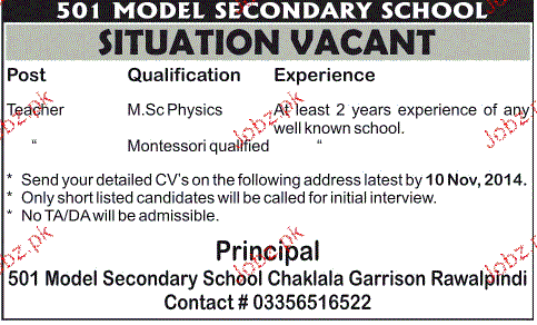 Apply as per details in job advertisement. Login to view further details of how to apply via https://www.jobz.pk online.