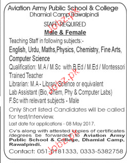 Teachers Job In Aviation Army Public School