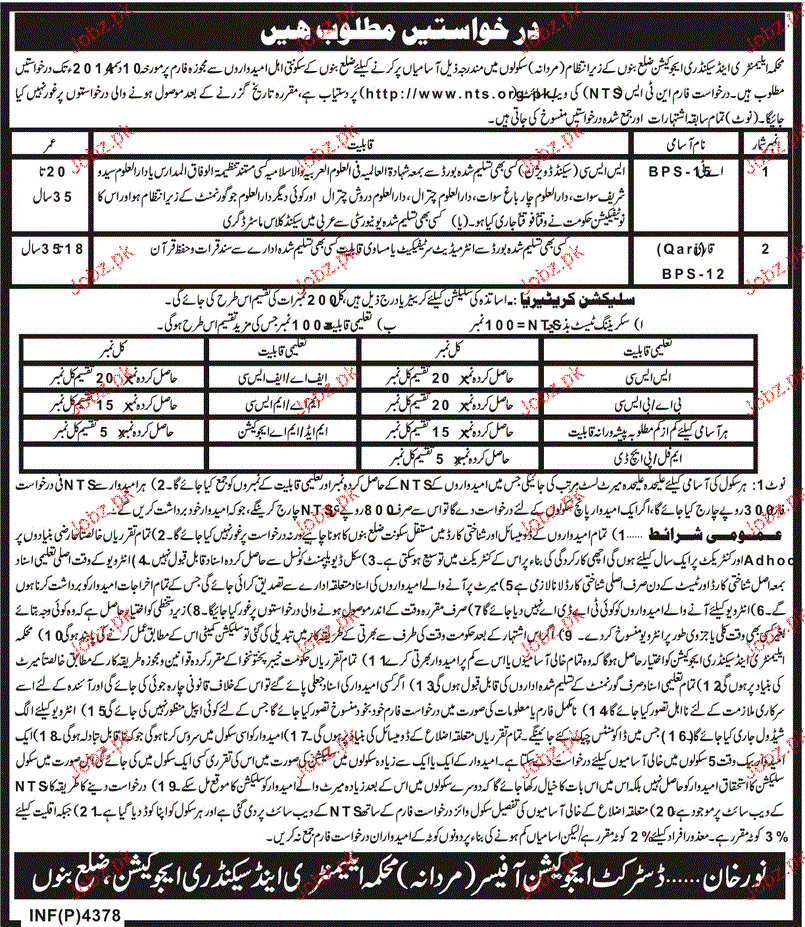 Apply as per details in job advertisement. Login to view further details of how to apply via https://www.jobz.pk online.