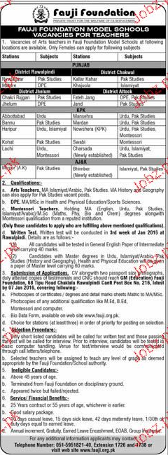 Latest Fauji Foundation Teaching Posts Rawalpindi 2025
