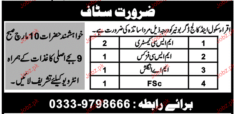 Apply as per details in job advertisement. Login to view further details of how to apply via https://www.jobz.pk online.