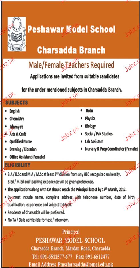 Teachers Job In Peshawar Model School