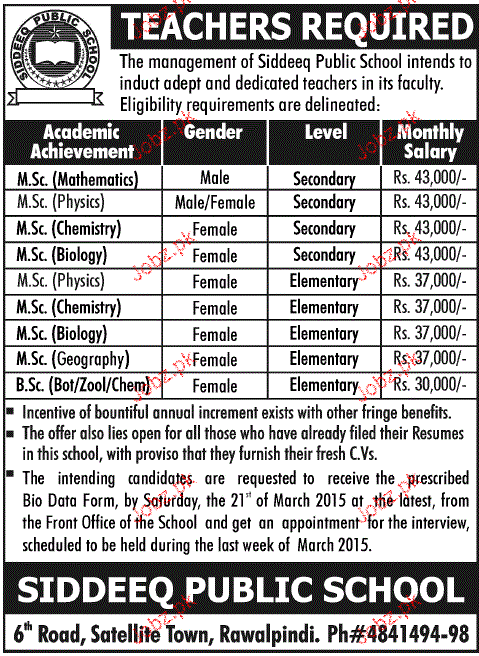 Teachers Job In Siddeeq Public School