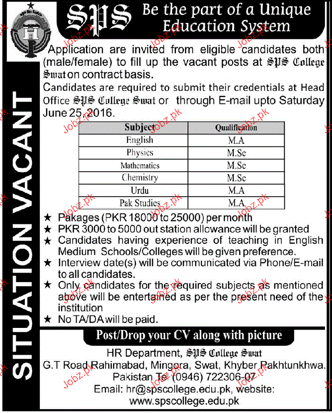 Apply as per details in job advertisement. Login to view further details of how to apply via https://www.jobz.pk online.