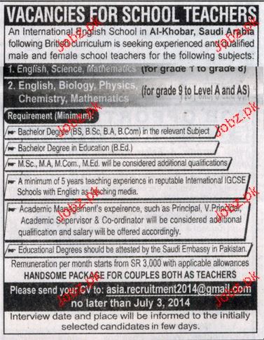 Latest Private Company Teaching Posts Saudi Arabia 2025
