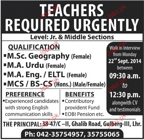 Latest Private Company Teaching Posts Lahore 2025