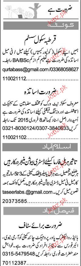 Latest Private Company Teaching Posts Quetta 2025