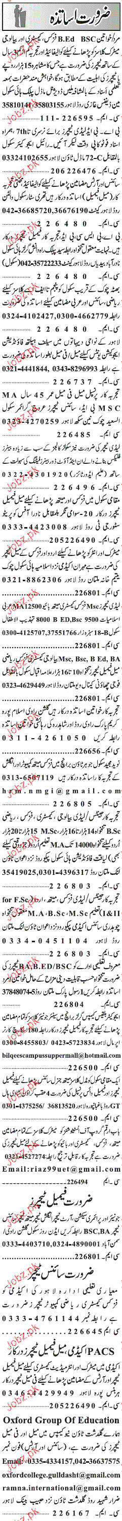 Teachers are required in Lahore.