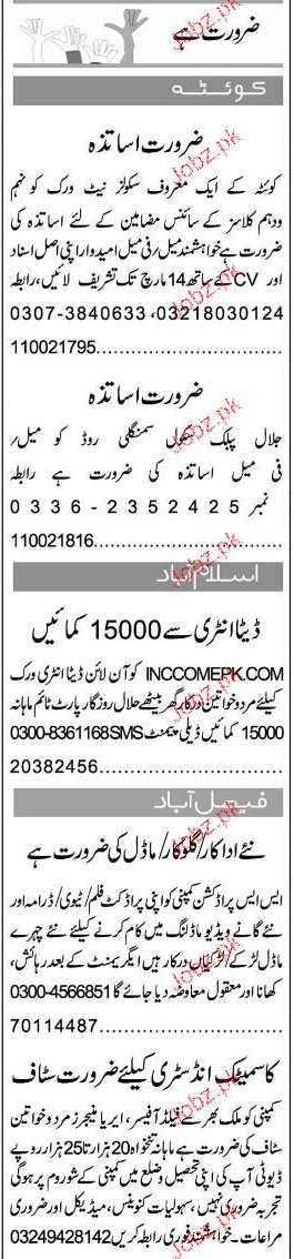 Apply as per details in job advertisement. Login to view further details of how to apply via https://www.jobz.pk online.