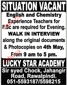 Teachers are required in Lucky Star Academy in Rawalpinid.
