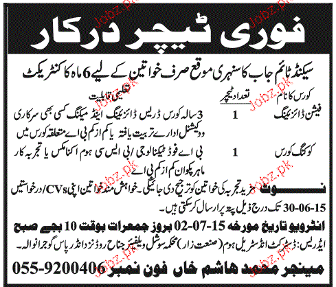 Teachers are required in Gujranwala.