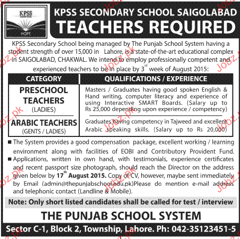 Apply as per details in job advertisement. Login to view further details of how to apply via https://www.jobz.pk online.