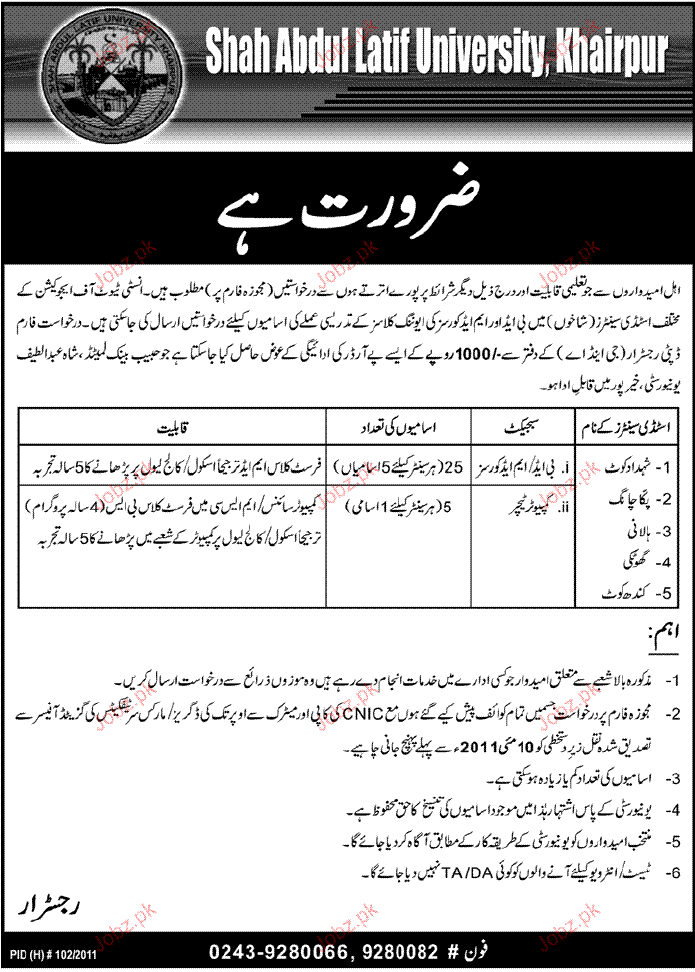 Apply as per details in job advertisement. Login to view further details of how to apply via https://www.jobz.pk online.