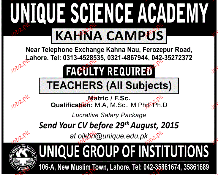 Apply as per details in job advertisement. Login to view further details of how to apply via https://www.jobz.pk online.