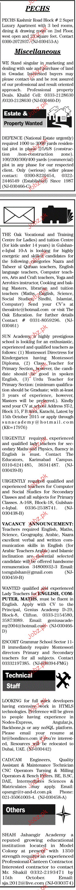 Teachers are required in Karachi.