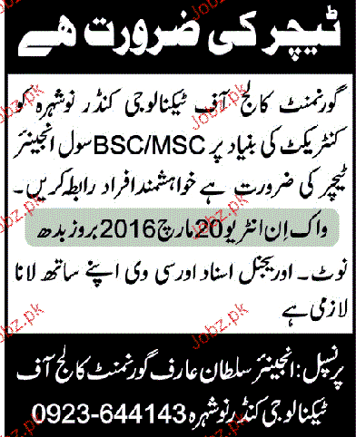 Apply as per details in job advertisement. Login to view further details of how to apply via https://www.jobz.pk online.