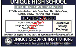 Teachers are required in Lahore.