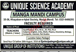 Teachers are required in lahore.