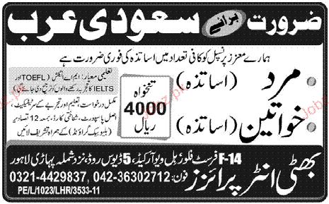 Latest Private Company Teaching Posts Saudi Arabia 2025