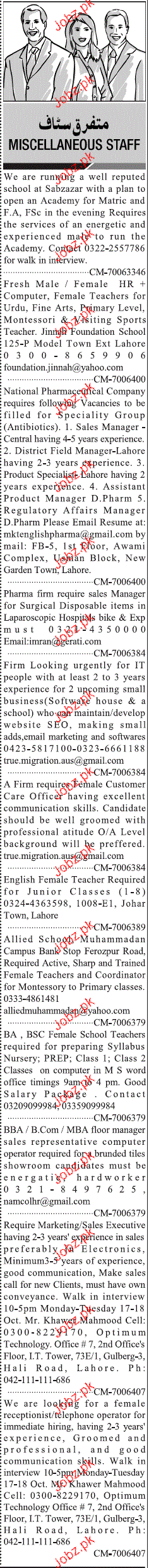 Latest Private Company Teaching Posts Lahore 2025