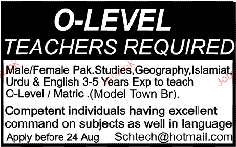Apply as per details in job advertisement. Login to view further details of how to apply via https://www.jobz.pk online.