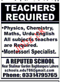 Latest Private Company Teaching Posts Lahore 2025
