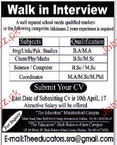 Teachers are required in Lahore.