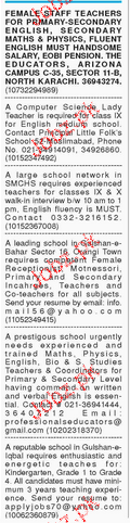 Teachers are required in Karachi.