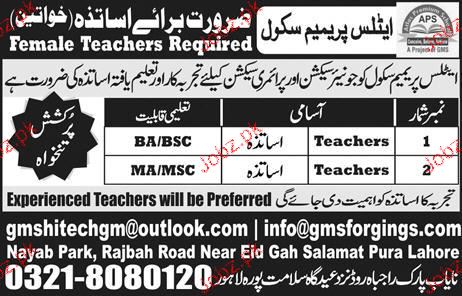 Female Teachers For Junior Section are required in Atla Premium School in Lahore. Qualified and Experienced Candidate Send their CV Along with All necessary Documents.
