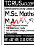 Teachers are required in Torus Academy in Rawalpindi. Qualified and Experienced Candidate Send their CV Along with All necessary Documents. Ambitious Candidate Send their CV.